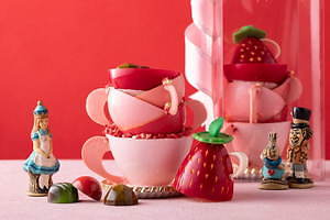 ヒルトン東京からは、童話『不思議の国のアリス』と苺をモチーフにしたティーカップ&苺のチョコレートセットが登場。苺やミルクティー風味のカップ型チョコレートの中には、フレーバーの異なる6種類のボンボンショコラが詰められている。2021年1月22日(金)より発売。