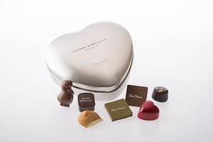 オークラ東京はピエール マルコリーニのコラボレーション。シルバーのハート型ボックスの中に、フランボワーズで香りづけしたビターガナッシュが包まれた「クール フランボワーズ」など全7種類のチョコレートを詰め合わせた限定アソートが登場。2021年2月1日(月)〜3月31日(水)まで。