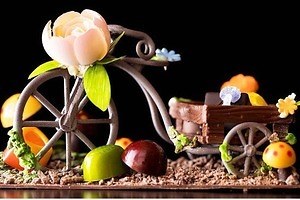 パレスホテル東京のバレンタイン限定商品「オーロージュ」は、文字盤から針まで全てチョコレートで作った直径16cmの時計型ショコラ。文字盤を開けると、中には濃厚な味わいのマダガスカル産のカカオを使用したトリュフが詰まっている。2021年2月1日(月)より発売。