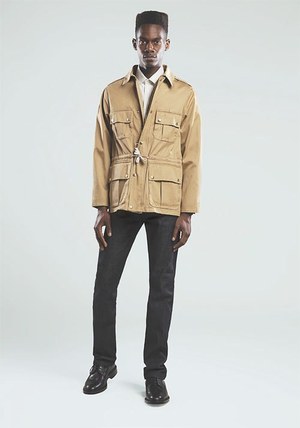 定番のセットアップやボタンダウンシャツ、ポロシャツなどのブランドのアイコニックなアイテムは継続して展開。それらを使用した全体のスタイリングやシルエット、落ち着いたトーンのカラーパレットからは、パリジャンの洒落た紳士像が伺える。そんな洗練された大人のスタイルに取り入れられた、プレッピーとは対照的な要素を持つカモフラージュ柄のジャケットは、ユニークなコントラストを生み一際存在感を放つ。今季から新たに取り入れたミリタリーチックな柄やストリートテイストなスタジアムジャケットで、メゾンキツネはワンランク上の大人のオシャレを演出する。