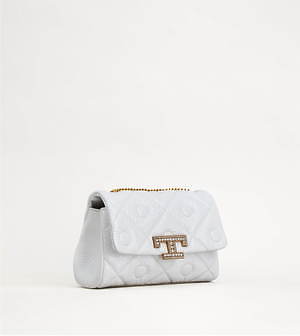 さらに同日には、トッズ 銀座店舗限定のクロスボディバッグも登場。ドライビングシューズ「ゴンミーニ」のペブルと、それを取り巻くダイヤモンドシェイプを、キルティングで落とし込んだラグジュアリーな佇まいが魅力的だ。またフラップにあしらった「T タイムレス」のモチーフも、柔らかなエナメルに映える華やかなデザイン。カラーは、ベルトポーチと同色のラインナップを揃えている。
