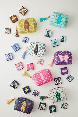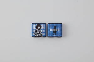 キャラクターをイメージしたカラーリングと、キャラクターのシルエットをプリントしたポップでスタイリッシュなデザインが魅力だ。また、スクエアフォルムの缶バッジや、ウエハースの包装紙にもキャラクターのイラストがあしらわれている。