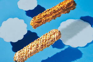 2020年に引き続き登場する「ザクザクシュー ホワイトチョコレート」は、“ホワイトチョコレートフレーバー”のスティック型シュークリーム。同店自慢の“ザクザク食感”の生地に、とろ~り濃厚なホワイトチョコレートカスタードクリームを注ぎ、仕上げにホワイトチョコレートをトッピングした。