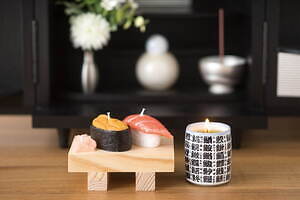 その他にもカメヤマローソクでは、フルーツや団子、うな重、寿司、煎茶など、リアルな食べ物・飲み物に見立てた3Dろうそくも販売。およそ100種類以上のラインナップを揃えているため、季節にちなんだデザインを選ぶのもオススメだ。