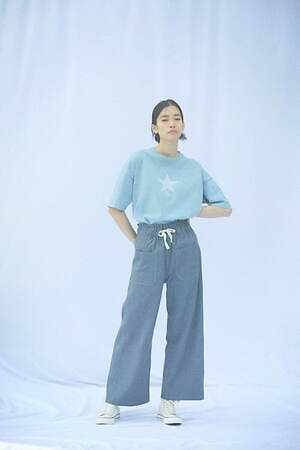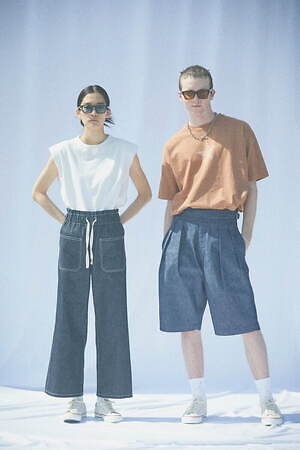 デビューコレクションとなる今シーズンは、コンバース「オールスター(ALL STAR)」のシューレースから着想を得たレースアップデザインのウィメンズシャンブレーシャツや、グルカパンツをアレンジしたワイドショートパンツ、ウィメンズのデニムイージーパンツといったデニムアイテムをメインにラインナップ。
