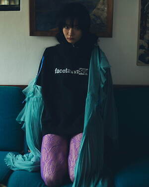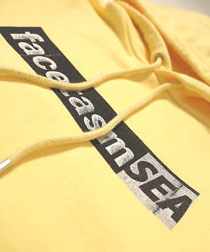 ファセッタズムからは、表と裏のデザインを逆転させたインサイドアウトデザインのフロントポケット付きコーチジャケットや裾にリブ編みを施したスウェットパンツ、ビッグシルエットのTシャツがラインナップ。いずれもブラックをベースとしたアイテムで、フロントに「SEA」のグラフィックを大胆にレイアウトした。