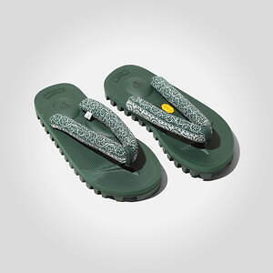 「THONG SANDAL」は、雪駄型をベースにしたユニークなサンダル。鼻緒や付属の収納袋には、ニードルズ 2021年春夏コレクションで展開されているオリジナルファブリックを採用。