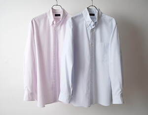 カラーはピンクとサックスの2色を用意。ボタニカルダイならではの優しく自然な色合いで、目も心も癒される上品なシャツに仕上げた。