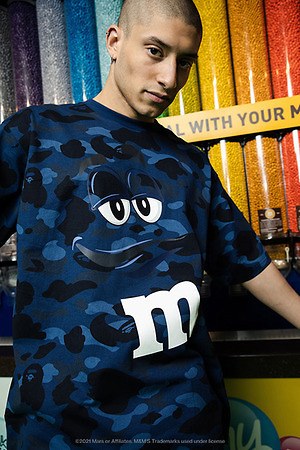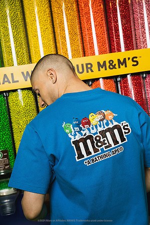 ア ベイシング エイプ(A BATHING APE)がチョコレートブランド「エムアンドエムズ(M&M’S)」とコラボレーションしたTシャツなどを、ア ベイシング エイプ正規取扱店舗ほかで2021年5月29日(土)より発売する。