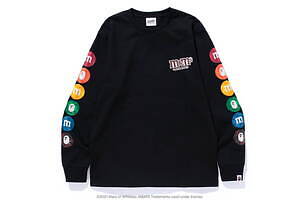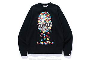 「エムアンドエムズ」のチョコレートで“エイプ ヘッド”を表現した、ユニークなTシャツ&クルーネックのスウェットもラインナップ。バックには、特別なコラボレーションロゴとチョコレートのイラストを配し、アクセントを加えた。