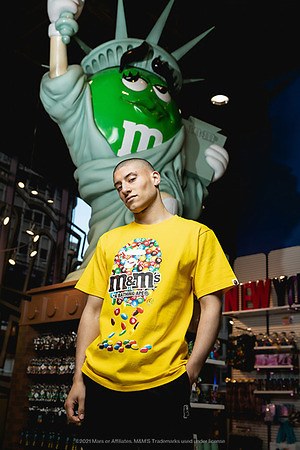 「エムアンドエムズ」は、アメリカで誕生したチョコレートブランド。“m”の文字をあしらった、カラフルな粒状のチョコレートを販売している。そんな「エムアンドエムズ」がファッションブランドと“初”のコラボレーションを果たし、Tシャツやフーディなどを展開する。