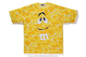 “ベイプ カモ(BAPE CAMO)柄”のTシャツには、「エムアンドエムズ」のアイコニックなキャラクターの顔をプリント。キャラクターのカラーに合わせて、レッド、ブルー、イエローの3色が揃う。
