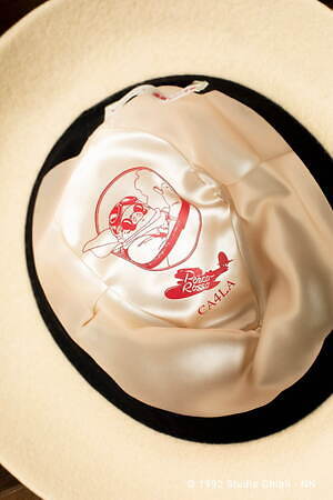 注目は、トレンチコートやサングラスと並び、ポルコ・ロッソを象徴するファッションアイテムとして知られる中折れハットだ。素材には、自社工場で特別に染色したきめの細かいメリノウールのフェルトを使用。トップに高さを出し、クラシックなシルエットに仕立てた。裏地には、ポルコ・ロッソと、飛行艇「サボイア S.21」のプリントがあしらわれている。