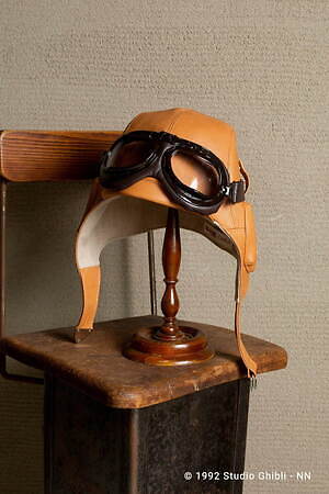 また、受注生産販売となるフライトキャップも用意。本体やゴーグルに姫路産の上質な牛革を使用し、1点1点手縫いで仕上げた。ハット同様、裏地にはポルコ・ロッソと「サボイア S.21」をプリントしている。