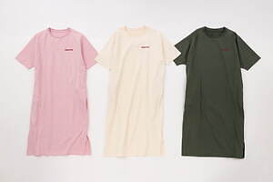 注目は、リラクシングなシルエットが特徴のTシャツワンピース。胸元にはハーゲンダッツのロゴを、バックにはカラーとリンクした、それぞれの“フレーバー名”をプリントした、遊び心溢れる表情に仕上げている。
