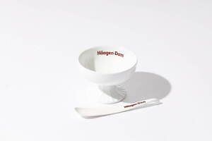 そのほか、ハーゲンダッツのシンプルなロゴをあしらった陶器製アイスクリームカップや、アイスクリームスプーンのテーブルウェアもお目見え。白を基調にしたクラシックなデザインは、いつものデザートタイムをより特別な時間へと変えてくれそうだ。