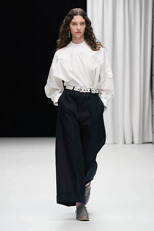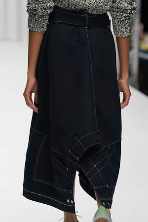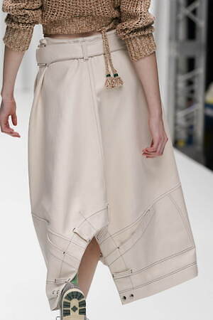 こうしたフィジカルな演出以外にも、ランウェイに続々と現れた最新コレクションの洋服たちは、あらゆる“仕掛け”が施されているようだった。ベルトが裾についたスカートや、ジップが張り巡らされているパンツ、襟が裾に来ているシャツなど。リアルクローズをベースにしながらも、こうした小さな“秘密”を隠した洋服たちは、きっと新しい日常に溶け込む“ニューノーマル”を作ってくれるに違いない。