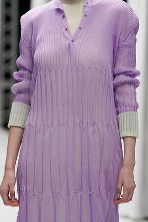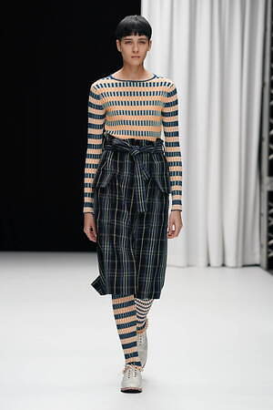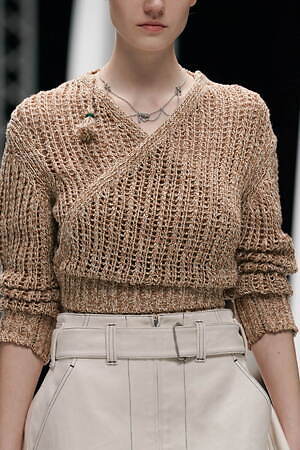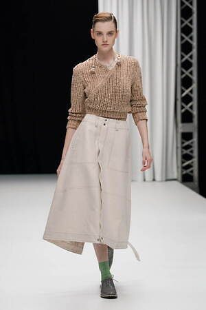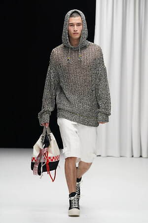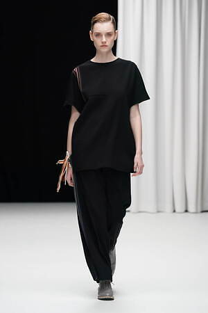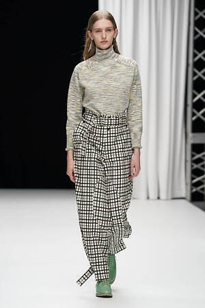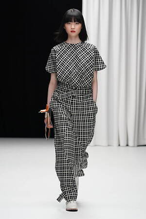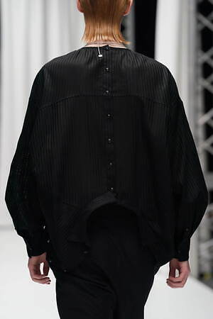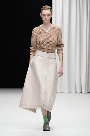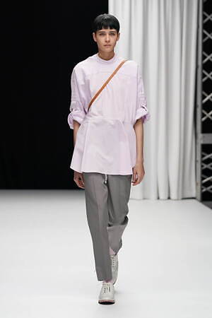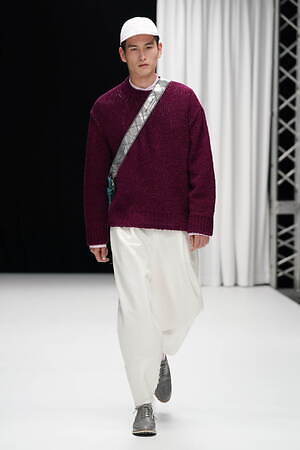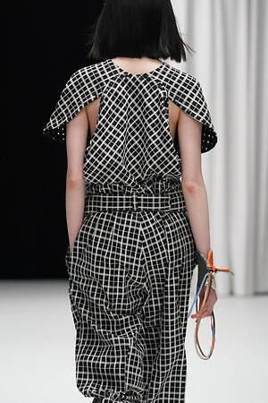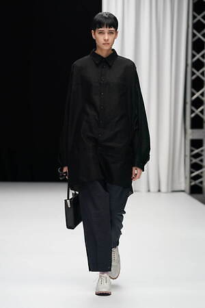 今シーズンは、そんなこれまでのアイディアを踏襲しながら、さらなる“進化”を目指す。上下・左右・前後など、あらゆる角度で着用できる洋服があれば、クローゼットの中はもっと少なく、それでいてファッションはもっと楽しくなるのではないか…?そんなデザイナーの考えを落とし込んだコレクションは、パターン構造デザインでの発展に加え、テキスタイルや素材にも表情の違いを生むデザインを追求するなど、一着でさらなる多面性を詰め込んでいるのが特徴だ。