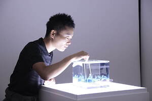 展示のスタートを飾るゾーン1では、軟骨魚類と硬骨魚類についてそれぞれの特長を紹介。実際の生き物たちを見ながら、普段見ることの出来ない生き物たちの体の中に秘められた美しく機能的な骨を観察することが出来る。さらに、同ゾーンでは透明標本作家・冨田伊織による標本作品も展示する。