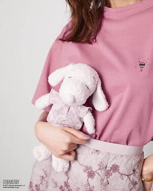 さらに、ジェラート ピケと「ピーナッツ」、スナイデルのトリプルコラボレーションによるスヌーピーのぬいぐるみも登場。ジェラート ピケの「moco moco」生地を使って仕立てたピンク色のスヌーピーぬいぐるみには、スナイデルのワンピース生産過程で余った生地で作った洋服を着せ、愛らしい佇まいに仕上げている。