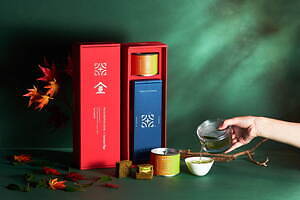 「バターサンド〈宇治抹茶〉 煎茶堂東京 煎茶缶セット」は、秋に向けた“お茶とお菓子”の限定セット。秋の紅葉をイメージした、鮮やかな朱色の特別なパッケージで展開する。
