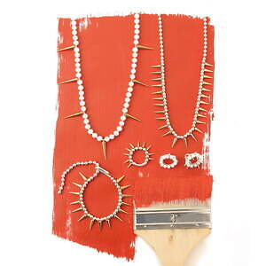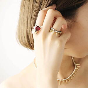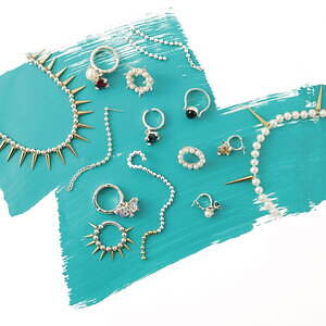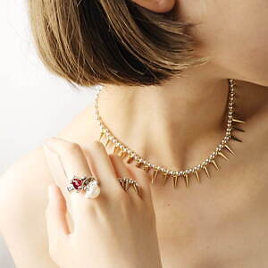 スタッズやパール、ボールチェーンの人気デザインを組み合わせたミックスジュエリーシリーズ「スタッズアンドパール(STUDS and PEARL)」もラインナップ。柔らかい印象のパールにハードなスタッズを組み合わせたネックレスや、スタッズとボールチェーンを一緒に楽しめるリングなどが揃う。