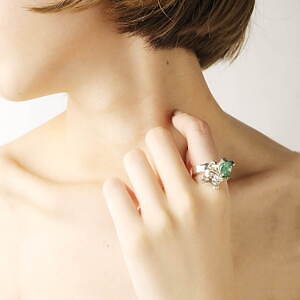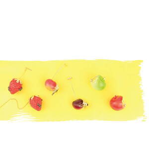 また、イー・エムのセカンドライン「ラブバイイーエム(LOVE BY e.m.)」は、“みずみずしいフルーツ”がモチーフの人気ジュエリーシリーズ「LOVE Fruit!」の新作を先行販売。かじられたようなフォルムのリンゴや、ハチが止まったサクランボ、2匹のアリをのせたイチゴといった、ユニークなデザインのピアスがラインナップする。