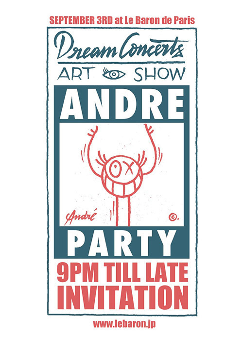 2013年9月4日よりメゾン キツネ(Maison Kitsuné) 東京にて開催されるフランスのグラフィティ・アーティスト、アンドレ・サレヴァ(André Saraiva)による展覧会。このオープニングを記念したパーティーが、2013年9月3日(火)に東京・南青山のLe Baron de Parisで開催される。
