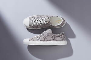 一方で「オールスター クップ PT OX(ALL STAR COUPE PT OX)」は、パイソン柄のレザーを使用した「オールスター クップ」。印象的な柄ながらも、柔らかなベージュカラーを採用することで上品に仕上げている。