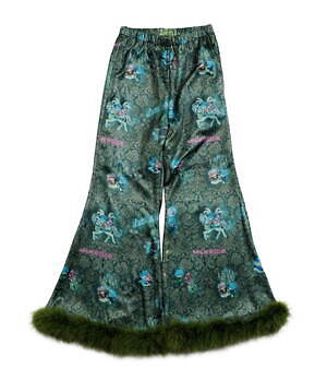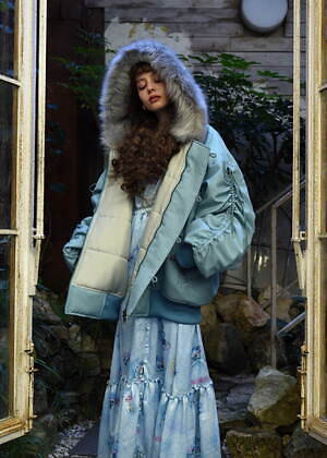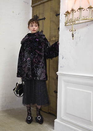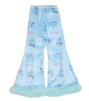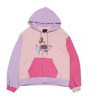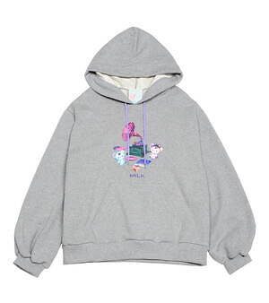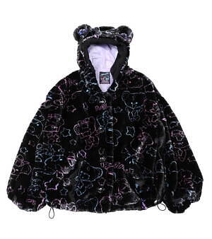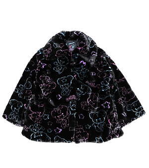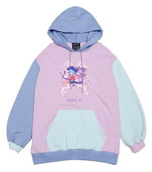 また、キキ&ララのぬいぐるみ“パフ&ポフ”は、もこもこのファーで仕立てたコートに登場。くまの耳付きコートや襟付きコートに、ミルクのロゴと一緒に可愛らしいキャラクターをネオンカラーで描いた。