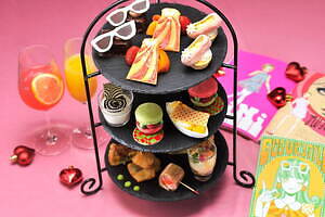 1960年代の英国ファッションを題材にした書籍『60sUKSTYLE』の著者であり、英国フリークの漫画家・イラストレーターの竹内絢香とのコラボレーションによって実現した「60sUKSTYLE Afternoon Tea」では、60年代当時に流行した個性的で刺激的なアイテムや、ヴィヴィッドなカラーから着想を得たスイーツなどが勢揃い。