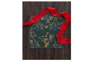 2021年クリスマスシーズンに向けて登場するのは、オーナメントやドレス、ジュエリーなど“キラキラとした”モチーフのハンカチーフだ。「ホリデー」は、たくさんのオーナメントやプレゼントを運ぶ鹿を描いた、ロマンティックな仕上がり。深みのあるグリーンで森を表現して、金顔料を使用することで華やかさをプラスした。