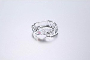 ルーチェ マッキアのアイコニックなジュエリーとして紹介したいのは、“溶けかけの氷”のようなユニークなルックスのリング。“メビウスの輪”をモチーフにし、ガラスの揺らぎを最大限に表現した。