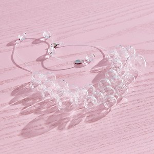 マリーナ&スザンナ セントを代表するのは、透明な吹きガラスの連なりで“泡立つシャボン”を表現した人気シリーズ「ソープ」。大小様々なガラスのパーツを組み合わせたネックレスや、2つの球体ガラスを繋げたピアスなどが揃う。
