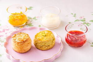 プレーンとピスタチオの2種類のスコーンは、「苺とマヌカハニーのジャム」などと合わせて味わうことが可能だ。