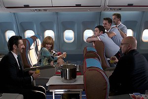 機体トラブルで空中旋回を続ける旅客機の中で、パイロット、オネエの客室乗務員たちや癖のある乗客たちのブラックな笑いに満ちたドラマが注目。映画のタイトルにもなるのが80年代に活躍したモータウンのコーラスグループ、ポインター・シスターズのヒット曲「I‘m So Excited」。このダンサブルなサウンドに乗せて送るワンシュチュエーション・コメディ。