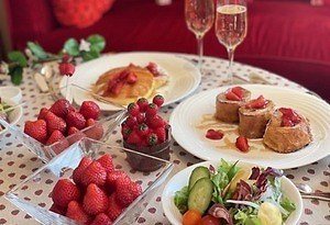 いちごたっぷりの朝食を堪能できる「ストロベリーブレックファースト」では、フレッシュいちごをトッピングしたパンケーキとフレンチトーストから選択可能。爽やかなストロベリージンジャーまたはグラスシャンパンも付いているので、朝から優雅な気分が味わえそうだ。