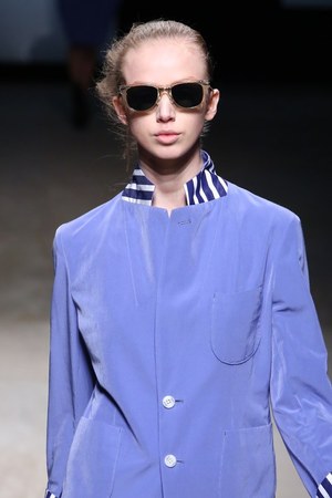 春夏らしい軽やかさを、素材感やヨウジヤマモト(Yohji Yamamoto)でパタンナーとして7年間培ってきたその意匠で表現して魅せ、初のランウェイを華々しく終えたウジョー。デザイナーの西崎暢のパタンナーの視点から生まれるクリエイションは、テーラリングの本質を問う。