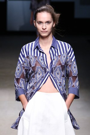 ウジョー(Ujoh) 2014年春夏コレクションが、MBFWTのメイン会場・渋谷ヒカリエで発表された。2009年にデビューして、今回がランウェイデビューとなる本ブランド。気品とスポーティさを融合させ、リラックス感ある優雅な女性像を描き出した。