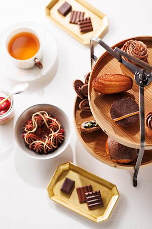 ル・ショコラ・アラン・デュカスのデザートサロンで人気のアフタヌーンティーセット「ル・グテ」が、春の味わいになって新登場。10種類のスイーツとともに、ティーやコーヒーを楽しめる。