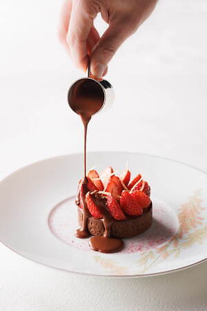 また、アフタヌーンティーセットに加え、「タルト・クラッカント ショコラ・フレーズ」も春メニューにラインナップ。香り立つなめらかなジャワ産のショコラ・オレとサクサク食感のプラリネ・フイヤンティーヌ、イチゴのコンフィを重ね、甘酸っぱいフレッシュイチゴ、仕上げのマダガスカル産ショコラソースをあしらって仕上げたタルトだ。とろけるようなショコラと軽やかなタルト、フレッシュなイチゴの調和を楽しめる。