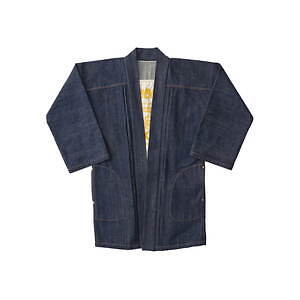ブランド初のデニムアイテムは、和ROBE定番の“半纏型”をセミロング丈に設定した「ROBE / DENIM NAGA HANTEN」。大手デニムメーカーの「ビッグジョン」が独自に開発した15.8オンス“5大陸オーガニックデニム”を使用している。天然の本藍ロープ染色で仕上げたインディゴカラーは、通常の3倍以上の時間を手間がかかっており、ふっくらとした味わいある風合い。ノンウォッシュなのでエイジングの楽しみもある1枚だ。
