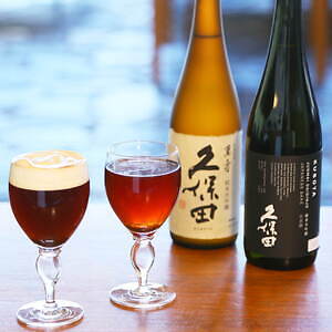 華やかな香りと重厚な味わいが特徴の日本酒「久保田 萬寿」には、丸山珈琲の定番ドリンク「ブレンドコーヒー」を合わせ、アイリッシュコーヒーに仕立てた。一口飲むと、チョコレートのような華やかさと複雑な深みが絶妙なハーモニーを奏でる。