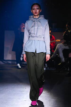 アニムスでは、「女性性」の2つの側面にフォーカス。振付家で舞踊家のピナ・バウシュからインスピレーションを受けたという、ボディラインに沿ったリブニットシャツやテーラードジャケットでは、上品な"華やかさ"が感じられる。さらに、クロップド丈のフーディやインナーなど、ボディコンシャスなアイテムが並ぶ。