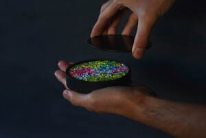 たとえば、美術作家・花道家の亀井紀彦が手がけるアートプロダクトブランド「雨 北鎌倉」は、「手のひらに自然の景色を」をコンセプトにした花の玉手箱を提案。両手におさまるサイズ感の器の中に、10種類以上のカラフルなドライフラワーで理想の風景を作り上げた、創造性溢れるアイテムだ。