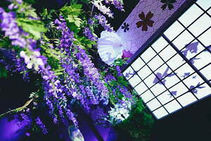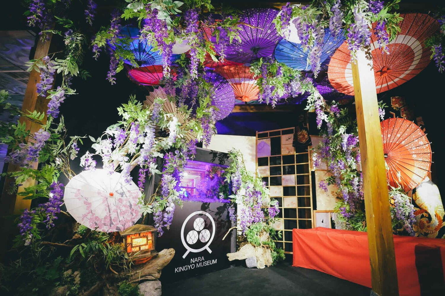 限定イベント「藤波と金魚 -2022-」では、金魚と藤の花を融合させた、スペシャルな展示が体感可能に。藤の名所が多い奈良県にちなみ、金魚が泳ぐ水槽に藤の花を美しく融合させた。400もの藤の花で装飾された空間は、思わず写真に収めたくなうようなフォトジェニックな仕上がりに。