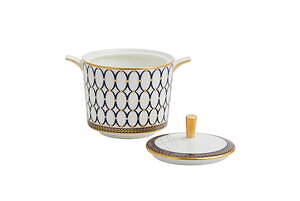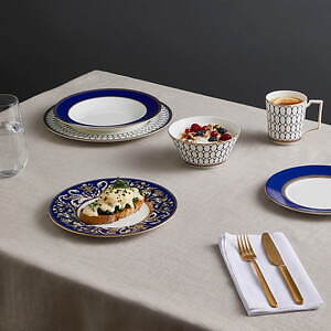 プレートは、ブルーの楕円模様とゴールドの帯をデザインしたサイドプレートや、深いコバルトブルーにゴールドの縁をあしらったスーププレート、神話上の動物を描いたアクセントプレートを用意。アクセントプレートは、2021年にリリースされた「ルネッサンス レッド」からも展開される。