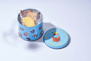 ※「神様のいたずらネコクッキー缶」は、身寄りのない動物を保護し、新しい里親を見つける活動を行う動物愛護団体「ランコントレ・ミグノン」へ収益の一部を寄付。