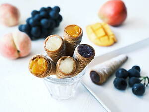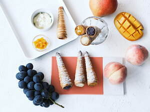 今回はその新作として、旬の桃、マンゴー、ぶどうを使った限定フレーバーが新たにラインナップ。それぞれのフルーツを合わせたミルククリームをクロワッサン生地の中にたっぷりと絞り、仕上げにフルーツジュレでふたをすれば、果実感溢れる夏だけの「クロワッサンコロネ」の完成だ。