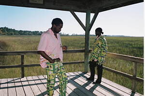 今回のコラボレーションでは、アフリカ系の民族「ガラ・ギーチー族(Gullah Geechee)」の物語に着目。鮮やかな色彩とグラフィックパターンを、ウェアや小物に落とし込んだ。